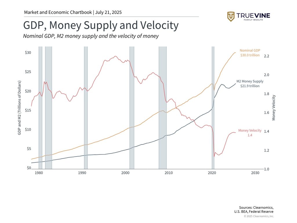 Politics aside, the Fed is expected to cut rates further this year. It has been on hold following several cuts in late 2024 due to uncertainty around tariffs. The reality is that Fed policy exists to support long-term growth trends. When the economy is strengthening, the Fed’s job is to make sure it does not overheat – sometimes described as “taking the punch bowl away.” When the economy is weak, lower rates may be needed to jumpstart growth.